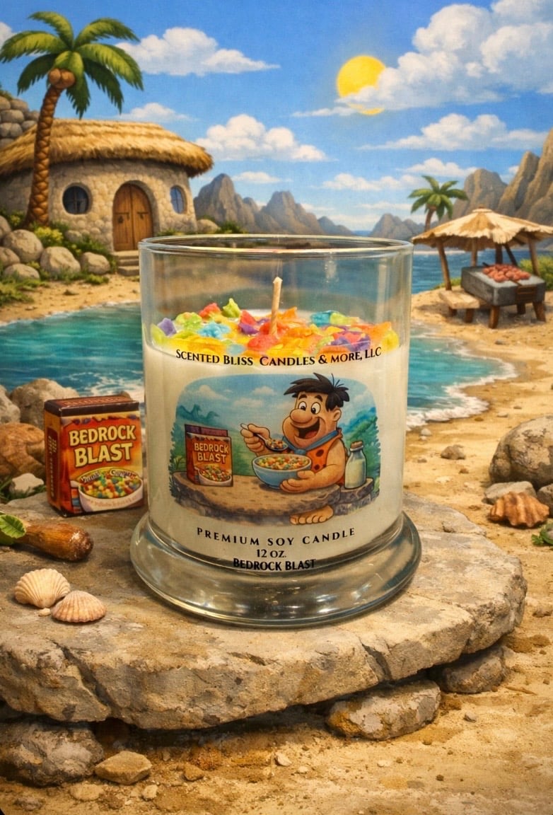 Delight in the whimsical indulgence of our Fruity Pebbles Candle, where sparkling citrus and sugared fruit melt into soft vanilla cream. Finished with beautifully realistic cereal embeds, this candle blends playful nostalgia with artisan craftsmanship — perfect for gifting or making a bold statement.