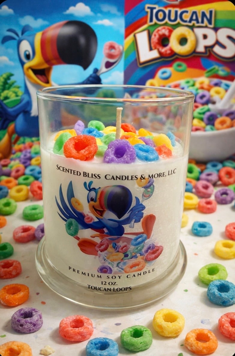 We heard you π Our Toucan Loops Candle with Cereal Embeds is now available in our standard vessels. This bright, sugary blend of zesty citrus, sweet berries, and creamy vanilla milk β just like a fresh bowl of your favorite rainbow cereal. Topped with adorable Toucan Loops embeds, this candle is bursting with childhood nostalgia, playful charm, and sweet, happy vibes.