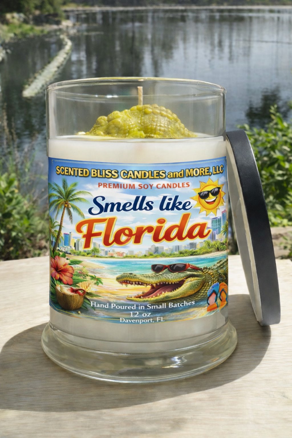 Our 12 oz Florida Welcoming Committee candle is about as cute as Alligators come . Scented in a “Florida” citrus scent this one is perfect for any Florida lover. These make great souvenirs, and holiday gifts .