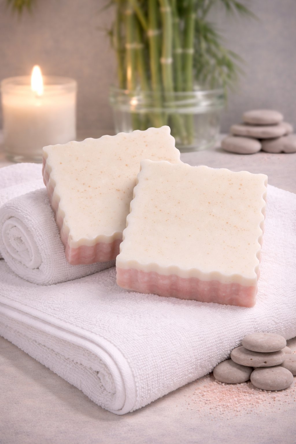 3.5 oz Scented in Coconut Milk , this bar has pink Himalayan sea salt in the bar and is blended with Coconut and Vanilla for a simple yet elegant fragrance.